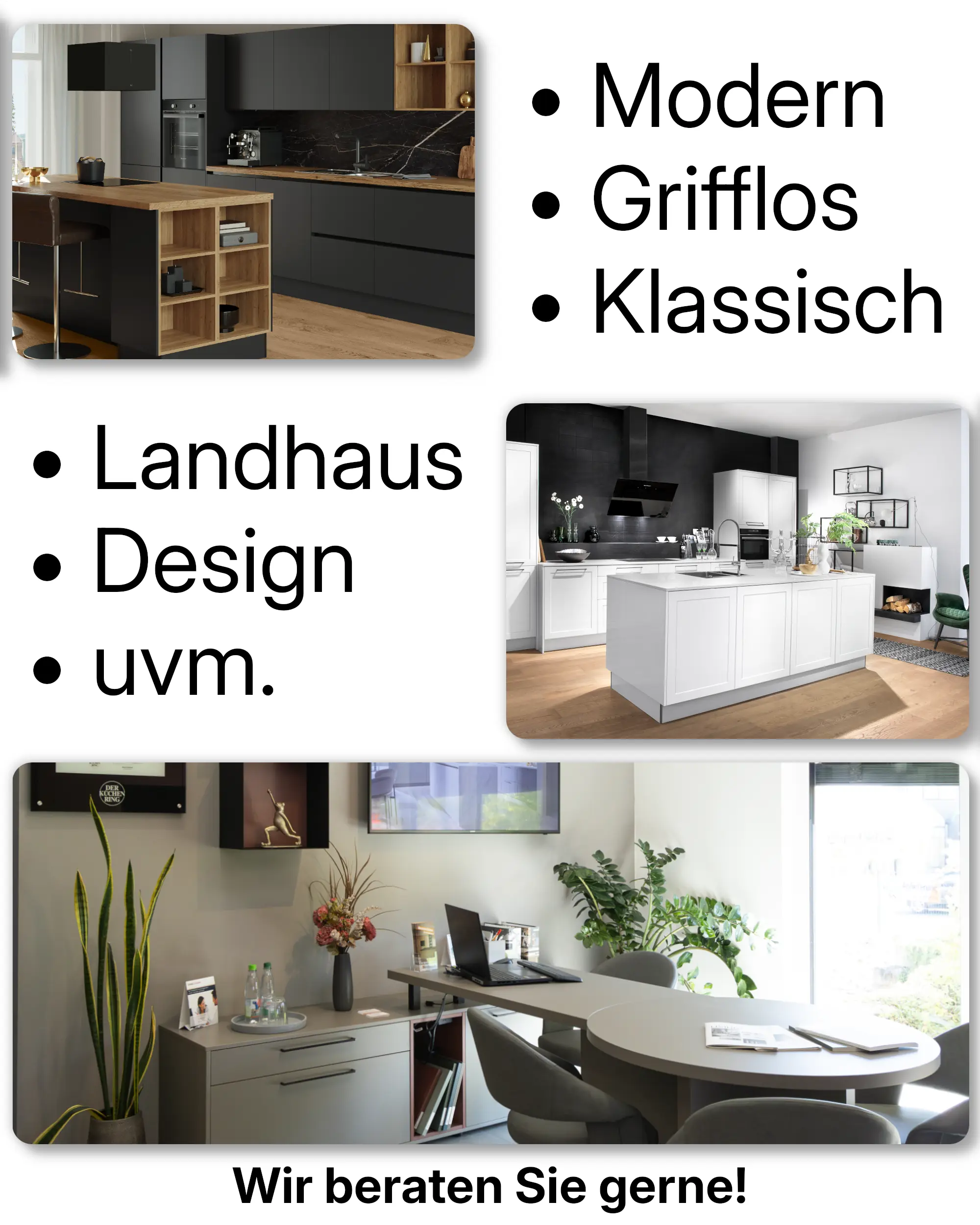 Antwort: Bei uns steht die inhabergeführte Beratung im Vordergrund. Sie sind keine Nummer im System, sondern sprechen direkt mit dem Experten, der Ihre Küche auch technisch verantwortet. Wir setzen auf ehrliche Netto-Preise statt undurchsichtiger Rabatt-Schlachten und garantieren eine Montagequalität, die wir als regionaler Fachbetrieb persönlich vertreten.
